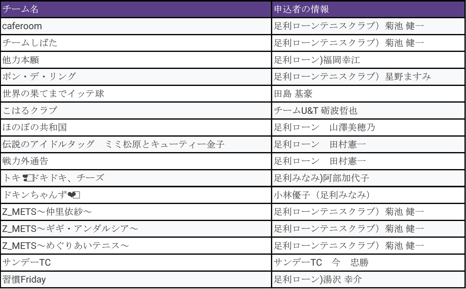 第10回 たかうじカップ受付名簿